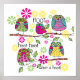Hootie Owl T-shirts, mugs, bags, cards, stickers, tote bags, magnets, mousepads, wall clocks, pillows, journals, and more, colorful and fun, features five owls on branches surrounded by flowers of magenta, yellow, and green!