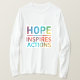 This vibrant and eye-catching t-shirt design features the powerful message "Hope Inspires Actions" in bold, multi-colored lettering. The abstract background adds a dynamic and artistic element, making it a visually striking piece. The design is perfect for anyone who believes in the transformative power of hope and the importance of taking action.