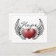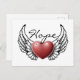 Inspirational graphic features red puffy heart on angel wings illustration with "Hope" text in modern font