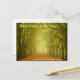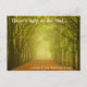 Postcard showing hope with light at the end of a tunnel by beech trees along a lane through the forest.