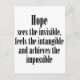 Beautiful, almost poetic saying about the qualities of hope: "Hope sees the invisible, feels the intangible and achieves the impossible."