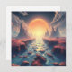 A beautiful surreal landscape with a large full moon rising over a pretty blue river. Ai art depicting a beautiful otherworldly landscape with a dreamlike quality. Wishing someone a magical day.