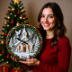 This beautiful, serene clock features a pristine white church covered in heavy snow, set amidst a forest of snow-laden pine trees. Two peaceful white doves fly above the steeple, and the scene is bordered by a rustic wreath of pine boughs and red berries. A banner at the bottom reads "Hope" in a traditional script. The design may look real due to the high detail and three-dimensional texture in the artwork.