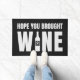Welcome guests to your home with a touch of humor and a personalized touch with this "Hope You Brought Wine" doormat! This design features bold white text on a black coir texture background, perfect for wiping your feet after a long day. The wine bottle graphic adds a fun touch, and can be customized with your own monogram and the year of your choice. Make a statement at your front door and add a personal touch to your home decor with this customizable doormat!