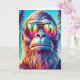 Funny Bigfoot birthday card. Cool Sasquatch styling in the forest with a pine tree background ai art.