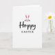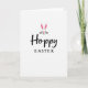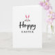 This design shows a simple white background with a cute bunny face centered on the front, its tall ears standing upright like a friendly wave 🐰. The bunny’s eyes are closed in a soft, content expression, as if sharing a quiet, affectionate moment with whoever holds the card. A small bright pink nose sits above fine whiskers, and pink accents warm the inner ears, adding a gentle romantic touch without crowding the space 🌷. Directly under the face, the word “Hoppy” is placed in a smooth, flowing black lettering style that feels relaxed and friendly. Beneath that, “EASTER” appears in uppercase black letters with a more traditional look, aligned neatly to keep the layout balanced. The wide open white space around the art and text makes the bunny’s pink details and the dark lettering stand out clearly. The inner ears show fuchsia-pink shading, and the nose is a bright pink dot at the center of the face.