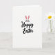 This card features a simple spring bunny head centered on a bright white background, with tall upright ears that show rosy pink inside 🐰. The bunny is drawn in soft gray, with closed crescent eyes that read like a gentle smile shared with someone close. Fine whiskers spread from a small pink nose, adding a sweet, friendly look that feels like a quiet hello between friends. Beneath the bunny, the words “Hoppy Easter” sit centered and slightly wide, written in dark lettering with smooth, flowing strokes. The text is placed just below the chin area, leaving plenty of white space so the bunny and message feel close but not crowded 🌷. The limited palette of gray, black, and pink keeps the scene calm and airy, like a note left on a kitchen table in early spring. The final detail is the dark “Hoppy Easter” line directly under the bunny’s face, with the ear interiors colored a warm pink.