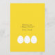 Hoppy Easter greeting card with colourful text, white eggs and yellow background.