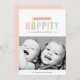 This photo easter greeting card features customer photo with a rainbow easter message in pastel pink, yellow, mint and taupe and a cute zig zag tag on white background.