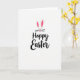 Designed with a simple Easter look, the card keeps a white background so the main illustration stands out. Near the top, a friendly bunny face 🐰 is outlined in a pale gray-blue, giving it a soft, gentle presence. The inner ears are bright pink, matching a tiny heart-shaped nose that adds a sweet, affectionate touch. The bunny’s eyes are drawn as relaxed closed curves with small lashes, like it’s smiling at someone close, and thin whiskers stretch out to either side. Centered beneath the face, the words “Hoppy Easter” appear in flowing black lettering, with the phrase taking up the middle of the card. The limited colors—white, black, and pink—keep the focus on the tender expression and the cozy, springtime feel 🌷. The final detail is the smooth sweep of the black letters sitting directly below the bunny’s chin.