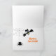 The front of this Halloween greeting card for kids features a happy green cartoon frog in front of a boiling cauldron. At his side is stylized text that says "Hoppy Halloween!" The cartoon image is placed on an orange jack-o-lantern pattern background. The inside of the card has a bat image, and a cute round black spider hanging from his web. The inside custom text currently says "Have a fun time", but you may change it or personalize it, if you wish. Cute, especially for kids! *Clip art used in this design is copyrighted by Encore Software, Inc., which permits use to its licensors. All rights reserved.