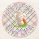 Hoppy Happy Easter Bunny Stripes And Plaid Pattern Round Paper Coaster
