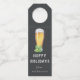 Painted beer glass and hops on chalkboard with pub style pattern backing, funny "Hoppy Holidays", personalized bottle hanger gift tags. Designed to match our Hoppy Holiday Collection.