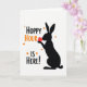 This design shows a long-eared animal in a black silhouette set on a bright white background, placed to the right as if stepping forward with quiet confidence 🐇. One paw lifts a small red die with white dots, like it’s offering a little shared luck between friends. On the left, the phrase “HOPPY HOUR IS HERE!” is arranged in large, hand-drawn lettering, with “HOPPY” and “IS HERE!” in black and “HOUR” in a warm orange. The spacing leaves lots of open white area, giving the words room to breathe while still feeling like they’re calling out to someone across the page. Small orange hearts scattered nearby add a gentle, affectionate touch, like a shy crush being hinted at rather than stated 🌷. A single orange star sits among the hearts, adding a tiny spark that balances the composition without crowding it. The limited palette of black, orange, and a pop of red keeps the scene graphic and focused, with the hearts and star floating around the left-side text.