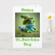 A wooly green frog made of yarn wearing a leprechaun hat! HOPPY St. Patrick's Day! Inside is an optional, unique holiday limerick about O'Malley the frog.