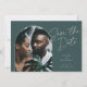 An elegant save the date design with a unique layout, this chic card features a vertical photo in an arched shape on a rich forest green background, with "save the date" in off-white hand lettered script typography. Personalize with your names, wedding date, and location, and add additional details to the back. A stunning design in a lush color palette for announcing your wedding.