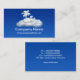 beautiful concept blue business card for travel vacations agency or agent. Cloud in the sky and silhouette of beach on it: beach chair, palm, umbrella...