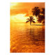 Photo print of a horizontal palm tree hanging over the water of the pacific ocean during sunset on a tropical island.
