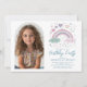 Horizontal Pink I Purple Rainbow & Hearts Birthday Invitation