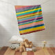 This baby blanket has a design of horizontal stripes in shades of blue, green, brown, purple, red, yellow, orange, and pink.