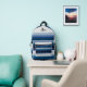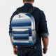 Wide and narrow horizontal stripes in blue, black, gray, and white make a classic and classy backpack.