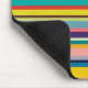 This mouse pad has a design of horizontal stripes in shades of blue, green, brown, purple, red, yellow, orange, and pink.