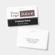 Easy to adjust company or business employee name badge with black and gray striped background. All text is adjustable. Add your own company logo. Made for long horizontal styled logos. If the fast template adjustment does not work for your logo, click on the customize further option to be able to delete and add your logo to the card.