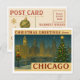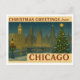 Share the magic of a classic Chicago winter with this Horizontal Vintage Chicago Christmas Postcard, featuring a beautifully illustrated snowy skyline, the iconic Wrigley Building, glowing streetlamps, and a festive Christmas tree overlooking the Chicago River.