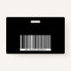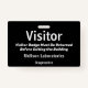 Horizontal Visitor's Pass badge in modern black and white design. All elements are changable or removable. Elements include: Visitor (can say "guest" or "pass" or other word, the phrase "Visitor Badge Must Be Returned Before Exiting the Building, company name, company department, Security barcode scan is on the back and can be changed or removed. Also available in vertical orientation in this store. Slot at top for lanyard.