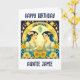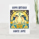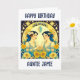 Personalized Birthday Card Beautiful Gemini twins surrounded by stars and flowers in yellow and blue. Pretty ethereal celestial zodiac art.