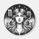 A black and white celestial Virgo woman vector art with starry background.