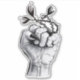 Horror art sticker with an ink drawing depicting a hand in fist with sharp black fingernails and a black ring with evil monsters with sharp teeth. Fun creepy creepy illustration with a gothic feel.
