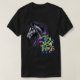 My 11 yo wore adult XL (5’7” 165#). The 8yo is small framed. She wore adult small and tied it in the back. Grandma wore adult large with long sleeve shirt underneath. Tall girl adult medium. Dark haired male adult large. Good quality dark Heather gray, Gildan brand shirt. -it was next up from basic choice and cost about $20 per shirt. Not too thick or thin. Washed and dried well, no major shrinkage. Not see-through. Can wear a bra under it fine. Screen print is just as shown and well done, front and back.