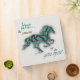 This is a "One of a Kind" Inspiring Quote Horse 3 Ring Binder! It Features a Unique Galloping Horse Silhouette in Turquoise, Black & Gold and the Inspiring Words..."Live Like Someone Left The Gate Open"!