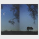 A beautifully surreal design featuring a horse under a moonlit sky, adorned with stars and framed by oak trees. A charming country-style wrapping paper.