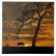 A beautiful fine art photography tile of a horse in the sunrise with a heritage oak tree. A stunningly colorful southwestern sky.