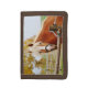 Beautiful photo of a horse at the gate, (perhaps waiting to go for a ride) is featured on this tri-fold wallet. A great wallet to keep or give as a gift for birthdays, graduations, Valentine's Day and more! Wallet is available in several different colors too.