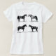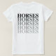 The perfect T-Shirt for horse lovers! This T-Shirt features four original brush & ink drawings by Lynn Cassels-Caldwell, with Arabian, Andalusian, Clydesdale and Thoroughbred horses on the front. It also includes a "Horses" graphic text on the back. Great for everyday use at home, in town, at horse shows or at the barn.