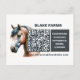Business postcard with QR code featuring a modern brown horse design. Great for farms, stables, and other businesses. The QR code on the front can be used for your website or online store. This is a business card magnet. Great mix of traditional and digital to meet your needs. The front also has space for your products and services such as equestrian, lessons, horseback riding, and boarding. Add your name, title, and contact information including your social media handles to the back of the business card. Customize the text on the front and back. Use the template to create your own business postcard.