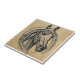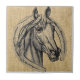 Vintage image (public domain) is a cameo style illustration of a horse with horseshoe frame. Burlap texture background