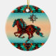 Personalize this "One of a Kind" Southwest Horse Christmas Ornament! It Features a Southwest Horse Galloping Under the Sun on a Turquoise and Orange Sunset Background...Surrounded by Turquoise, Orange and Black Borders!