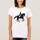 This tee shirt sports an image of a rider in top hat and shadbelly on a horse in the dressage arena. Wear this tee in your training or casual riding, or just for every day activities. It makes a great gift for a horse-loving friend or loved one. It also can be customized with your stable name or other text to give your barn staff a cohesive look. (If you have any problems adding text, please contact me and I'll be happy to do it for you.) For more horse-related items, see my Collection "Equine & Equestrian."