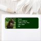 Photograph of a handsome brown horse against green pasture on hunter green (customizable) background. Customize text for desired address.