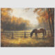 This beautiful painting captures a majestic horse standing in a sunlit field during golden hour, bathed in warm, glowing light. The rich tones and soft brushstrokes create a serene and timeless scene, perfect for equestrian and nature lovers.