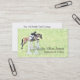 A business card template for riding instructors, trainers or dealers with a colour illustration of a showjumping horse and rider, made from a photo taken at a local show.