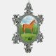 Celebrate the bond between a horse and its owner this holiday season by hanging this beautiful keepsake ornament on your Christmas tree. This unique ornament features an illustration of a horse in a lush green pasture, set against a warm color palette of brown, green, and blue. The ornament includes three customizable placeholders where you can add a stable name, horse name, and the current year. What sets this ornament apart is its versatility – you can easily switch between six different horse breeds by utilizing the layers option. Want to showcase a different breed? Simply hide the current horse illustration and reveal the one you desire. This feature will make a perfect gift for any horse enthusiast by allowing you to tailor the ornament to match their beloved horse’s breed. Whether you are buying a gift for yourself or a fellow horse lover, this customizable ornament will make a thoughtful gift that will be cherished for years to come.