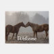 Welcome doormat featuring a couple of horses nudging noses in the middle of a field of rolling hills on a foggy morning in Ozark Missouri in late winter. Looking for more prints or products? Feel free to visit my store: http://www.zazzle.com/timelessmomentsphtgy