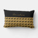 The perfect pillow for the horse-loving equestrian is reversible with different designs on each side. One side has a golden brown horse on a golden brown and black striped plaid. The other side has a repeating print of a black horse on a solid color golden brown back ground, personalized with golden brown text on a black strip.