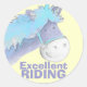 Kids equestrian praise stickers "Excellent Riding". Cute sticker to congratulate young horse riders on a great performance. Perfect for parents of young horse riders and equestrian learning centres and kids riding school camps. Uniquely painted and designed by Sarah Trett.