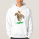 Gear up for the races with this bold men's hoodie showcasing a vector championship design. The high-quality sport illustration captures a Thoroughbred rider guiding a running racehorse during a high-stakes Derby competition. This garment features a dynamic, fast paced action equine graphic, perfect for keeping warm while showing your appreciation for the classic horseman. It's a great piece of professional athlete-inspired retro animal art for any fan.